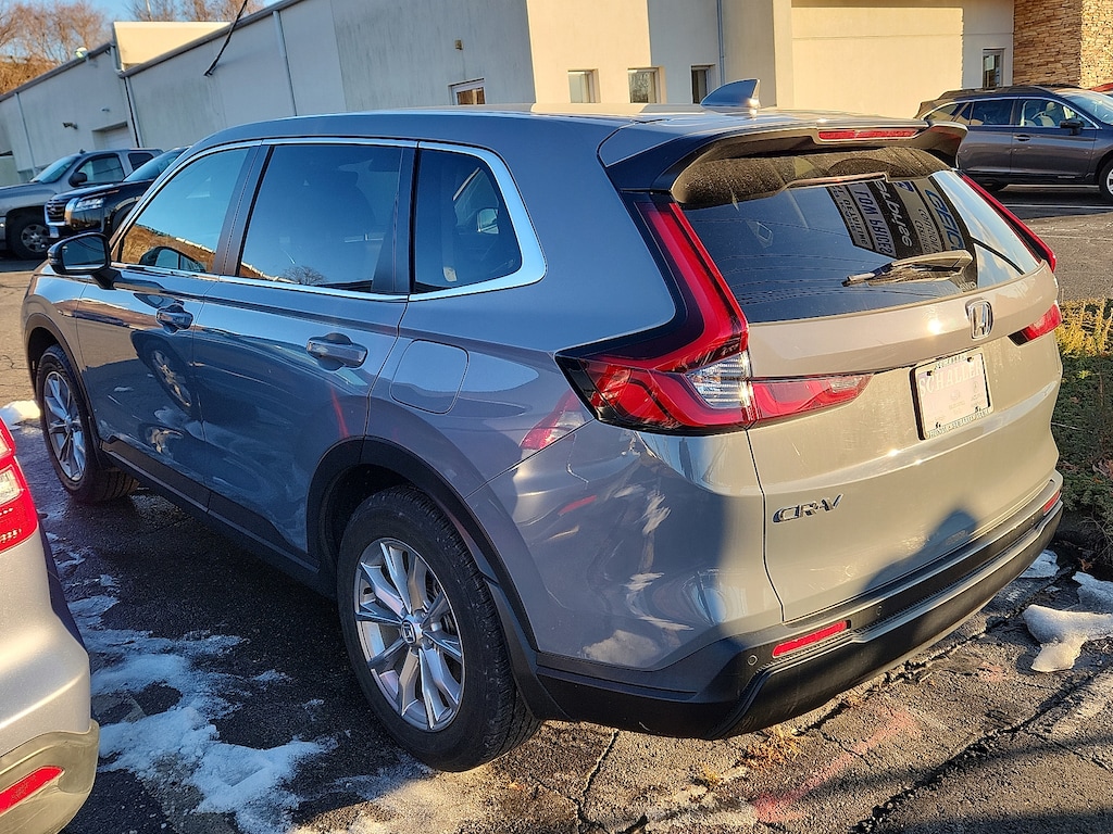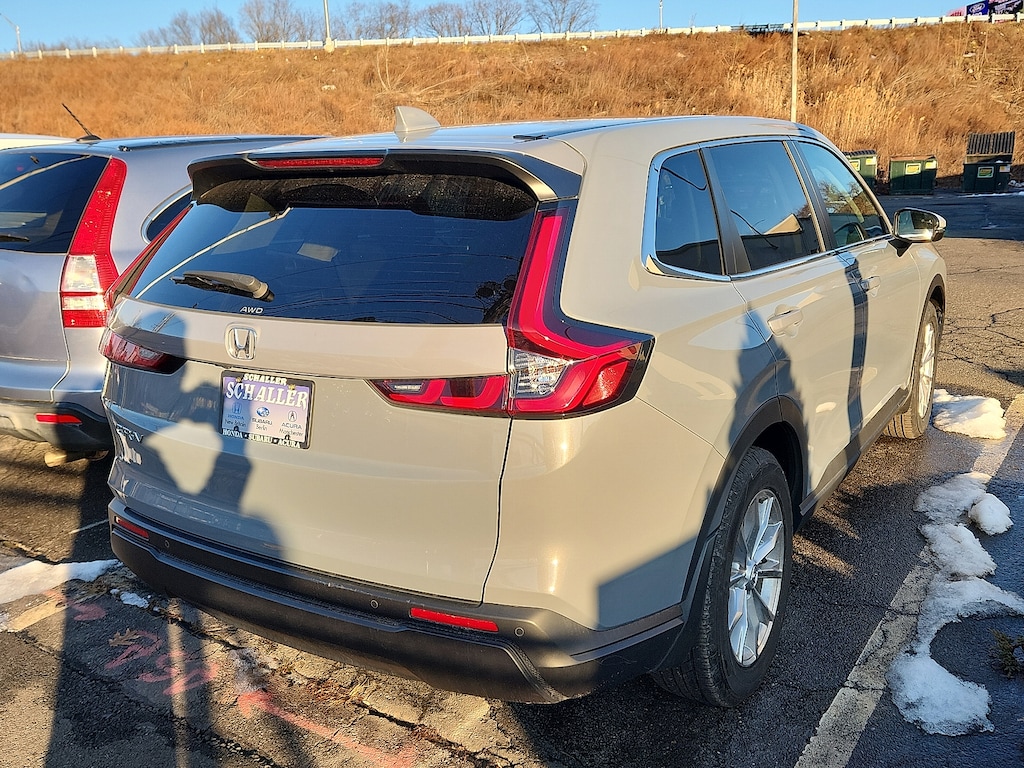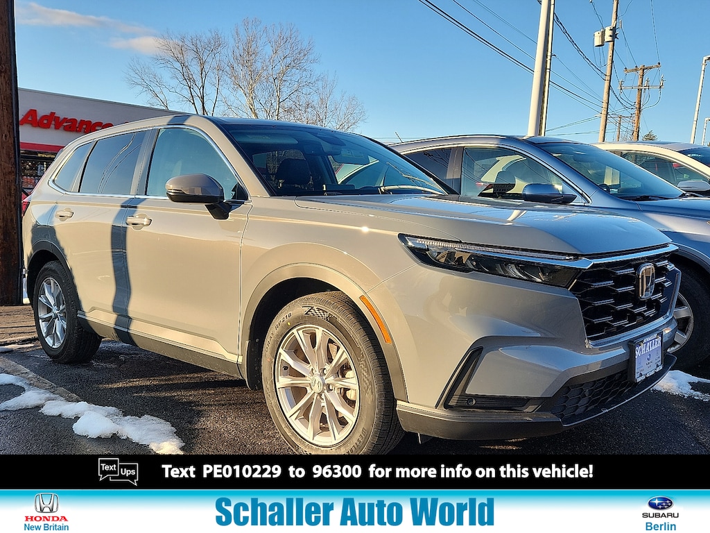 "Urban Gray Pearl 2023 Honda CR-V EX-L 1.5L I4 DOHC 16V CVT AWD4-Wheel Disc Brakes 5.64 Axle Ratio 8 Speakers ABS brakes Adaptive Cruise Control: Adaptive Cruise Control (ACC) with Low-Speed Follow Air Conditioning AM/FM radio: SiriusXM Auto High-beam Headlights Auto-dimming Rear-View mirror Automatic temperature control Blind Spot Information (BSI) System warning Brake assist Bumpers: body-color Compass Driver door bin Driver vanity mirror Dual front impact airbags Dual front side impact airbags Electronic Stability Control Exterior Parking Camera Rear Four wheel independent suspension Front anti-roll bar Front Bucket Seats Front Center Armrest Front dual zone A/C Front reading lights Fully automatic headlights Heated door mirrors Heated Front Bucket Seats Heated front seats Illuminated entry Knee airbag Leather Seat Trim Leather Shift Knob Leather steering wheel Low tire pressure warning Memory seat Occupant sensing airbag Outside temperature display Overhead airbag Overhead console Panic alarm Passenger door bin Passenger vanity mirror Power door mirrors Power driver seat Power Liftgate Power moonroof Power passenger seat Power steering Power windows Radio data system Radio: 320-Watt AM/FM/HD/SiriusXM Audio System Rear anti-roll bar Rear reading lights Rear seat center armrest Rear side impact airbag Rear window defroster Rear window wiper Remote keyless entry Security system Speed control Speed-sensing steering Speed-Sensitive Wipers Split folding rear seat Spoiler Steering wheel mounted audio controls Tachometer Telescoping steering wheel Tilt steering wheel Traction control Trip computer Turn signal indicator mirrors Variably intermittent wipers Wheels: 18""Sparkle Silver Metallic Wireless Apple CarPlay/Wireless Android Auto. Priced below KBB Fair Purchase Price! 27/32 City/Highway MPGHonda Details: * Transferable Warranty * Vehicle History * Roadside Assistance * Vehicles purchased within New Vehicle Limited Warranty period: extends New Vehicle Limited Warranty to 5 years*/60000 miles*. Honda Care Roadside Assistance for 2 year/100000 miles (whichever occurs first). Up to two complimentary oil changes within the first year of ownership. SiriusXM 90-Day Trial. * Warranty Deductible: $0 * Powertrain Limited Warranty: 84 Month/100000 Mile (whichever comes first) from original in-service date * 182 Point Inspection * Limited Warranty: 24 Month/100000 Mile (whichever comes first) after new car warranty expires or from certified purchase dateSchaller Auto Group has TWO Used Car Locations: Right off Route 9 in New Britain and Route 9 and the Berlin Turnpike in Berlin. Please call 860-826-2023 to confirm this Vehicle's Location. All of our Pre-Owned Vehicles go through our Comprehensive 125 Point Quality Inspection. Every Schaller pre-owned vehicle comes with warranty coverage! With all budgets in mind we now offer Schaller âValue Carsâ starting at $2995 and include a 30 day satisfaction guarantee and all come with a FREE Carfax Vehicle History Report. The Schaller Auto Group is Family Owned and Operated for Over 65 Years and is known for Selling Top Quality Used Vehicles and Standing behind them After the Sale!"
