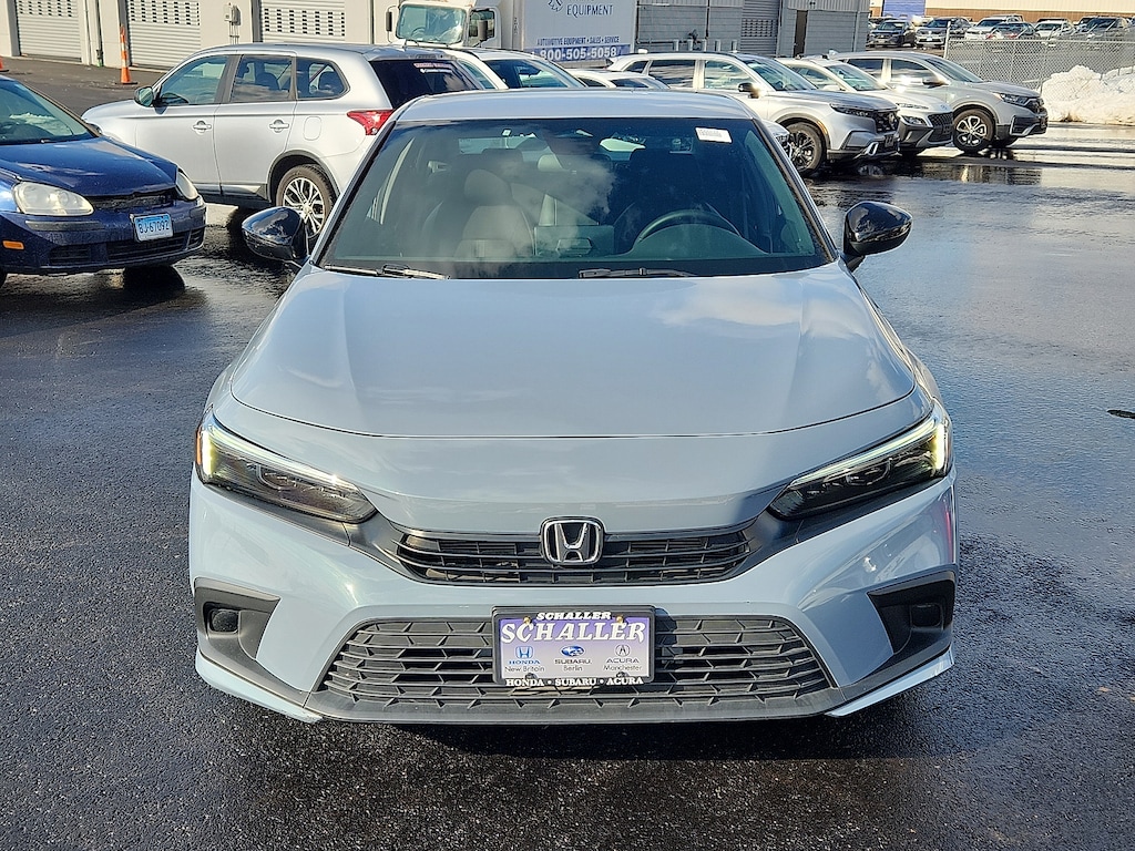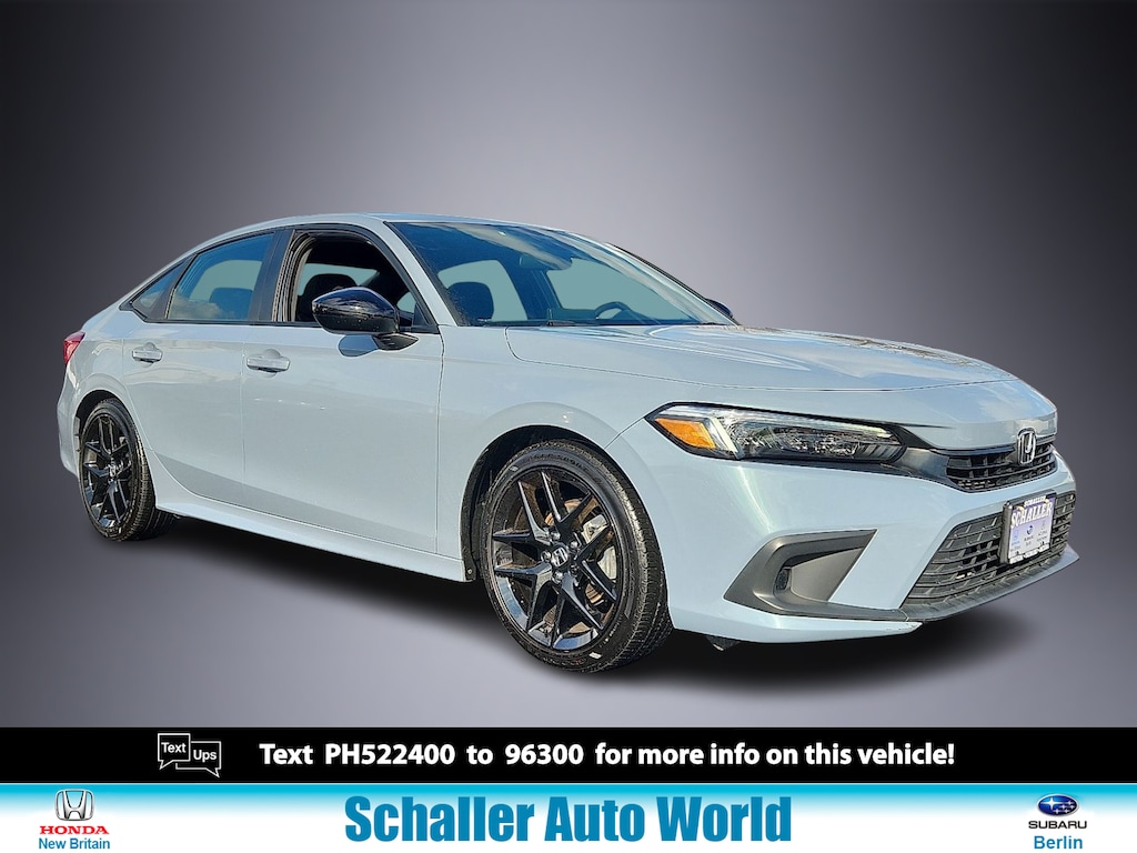 "Gray 2023 Honda Civic Sport 2.0L I4 DOHC 16V i-VTEC CVT FWD4-Wheel Disc Brakes 8 Speakers ABS brakes Adaptive Cruise Control: Adaptive Cruise Control (ACC) with Low-Speed Follow Air Conditioning AM/FM radio Apple CarPlay/Android Auto Auto High-beam Headlights Automatic temperature control Brake assist Bumpers: body-color Cloth Seat Trim Delay-off headlights Driver door bin Driver vanity mirror Dual front impact airbags Dual front side impact airbags Electronic Stability Control Emergency communication system: HondaLink Exterior Parking Camera Rear Four wheel independent suspension Front anti-roll bar Front Bucket Seats Front Center Armrest Front reading lights Fully automatic headlights Illuminated entry Knee airbag Leather Shift Knob Leather steering wheel Low tire pressure warning Occupant sensing airbag Outside temperature display Overhead airbag Panic alarm Passenger door bin Passenger vanity mirror Power door mirrors Power steering Power windows Radio data system Radio: 180-Watt Audio System w/8 Speakers Rear anti-roll bar Rear side impact airbag Rear window defroster Remote keyless entry Security system Speed control Speed-sensing steering Steering wheel mounted audio controls Tachometer Telescoping steering wheel Tilt steering wheel Traction control Trip computer Wheels: 18""Gloss Black Alloy. Priced below KBB Fair Purchase Price! Odometer is 6768 miles below market average! 30/37 City/Highway MPGSchaller Auto Group has TWO Used Car Locations: Right off Route 9 in New Britain and Route 9 and the Berlin Turnpike in Berlin. Please call 860-826-2023 to confirm this Vehicle's Location. All of our Pre-Owned Vehicles go through our Comprehensive 125 Point Quality Inspection. Every Schaller pre-owned vehicle comes with warranty coverage! With all budgets in mind we now offer Schaller âValue Carsâ starting at $2995 and include a 30 day satisfaction guarantee and all come with a FREE Carfax Vehicle History Report. The Schaller Auto Group is Family Owned and Operated for Over 65 Years and is known for Selling Top Quality Used Vehicles and Standing behind them After the Sale!"