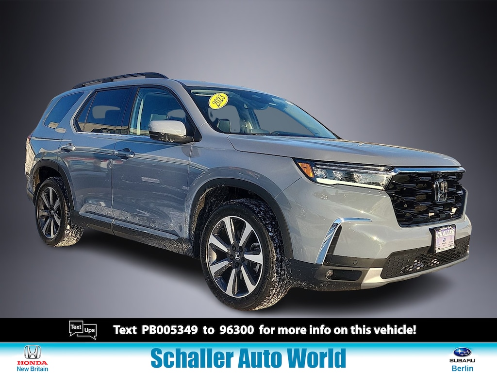 "2023 Honda Pilot Elite 3.5L V6 DOHC 24V 10-Speed Automatic AWD12 Speakers 3rd row seats: split-bench 4-Wheel Disc Brakes ABS brakes Adaptive Cruise Control: Adaptive Cruise Control (ACC) with Low-Speed Follow Air Conditioning AM/FM radio: SiriusXM Apple CarPlay/Android Auto Auto High-beam Headlights Auto-dimming door mirrors Auto-dimming Rear-View mirror Automatic temperature control Axle Ratio: 4.167 Blind Spot Information (BSI) System warning Bose Premium Sound System Brake assist Bumpers: body-color Compass Delay-off headlights Driver door bin Driver vanity mirror Dual front impact airbags Dual front side impact airbags Electronic Stability Control Emergency communication system: HondaLink Four wheel independent suspension Front anti-roll bar Front Bucket Seats Front Center Armrest Front dual zone A/C Front fog lights Front reading lights Fully automatic headlights Garage door transmitter: HomeLink Heads-Up Display Heated & Ventilated Front Bucket Seats Heated door mirrors Heated front seats Heated rear seats Heated steering wheel Illuminated entry Knee airbag Lane departure: Lane Keeping Assist System (LKAS) active Low tire pressure warning Memory seat Navigation system: Honda Satellite-Linked Navigation System Occupant sensing airbag Outside temperature display Overhead airbag Overhead console Panic alarm Passenger door bin Passenger vanity mirror Perforated Leather Seat Trim Power door mirrors Power driver seat Power Liftgate Power moonroof Power passenger seat Power steering Power windows Radio data system Rain sensing wipers Rear air conditioning Rear anti-roll bar Rear reading lights Rear seat center armrest Rear window defroster Rear window wiper Reclining 3rd row seat Remote keyless entry Security system Speed control Speed-sensing steering Speed-Sensitive Wipers Split folding rear seat Spoiler Steering wheel mounted audio controls Tachometer Telescoping steering wheel Tilt steering wheel Traction control Trip computer Turn signal indicator mirrors Variably intermittent wipers Ventilated front seats Wheels: 20""Machine Face Shark Gray w/Blk Lug Nuts. Priced below KBB Fair Purchase Price! Odometer is 10564 miles below market average!Honda Details: * Roadside Assistance * 182 Point Inspection * Limited Warranty: 24 Month/100000 Mile (whichever comes first) after new car warranty expires or from certified purchase date * Vehicles purchased within New Vehicle Limited Warranty period: extends New Vehicle Limited Warranty to 5 years*/60000 miles*. Honda Care Roadside Assistance for 2 year/100000 miles (whichever occurs first). Up to two complimentary oil changes within the first year of ownership. SiriusXM 90-Day Trial. * Vehicle History * Transferable Warranty * Powertrain Limited Warranty: 84 Month/100000 Mile (whichever comes first) from original in-service date * Warranty Deductible: $0Schaller Auto Group has TWO Used Car Locations: Right off Route 9 in New Britain and Route 9 and the Berlin Turnpike in Berlin. Please call 860-826-2023 to confirm this Vehicle's Location. All of our Pre-Owned Vehicles go through our Comprehensive 125 Point Quality Inspection. Every Schaller pre-owned vehicle comes with warranty coverage! With all budgets in mind we now offer Schaller âValue Carsâ starting at $2995 and include a 30 day satisfaction guarantee and all come with a FREE Carfax Vehicle History Report. The Schaller Auto Group is Family Owned and Operated for Over 65 Years and is known for Selling Top Quality Used Vehicles and Standing behind them After the Sale!"