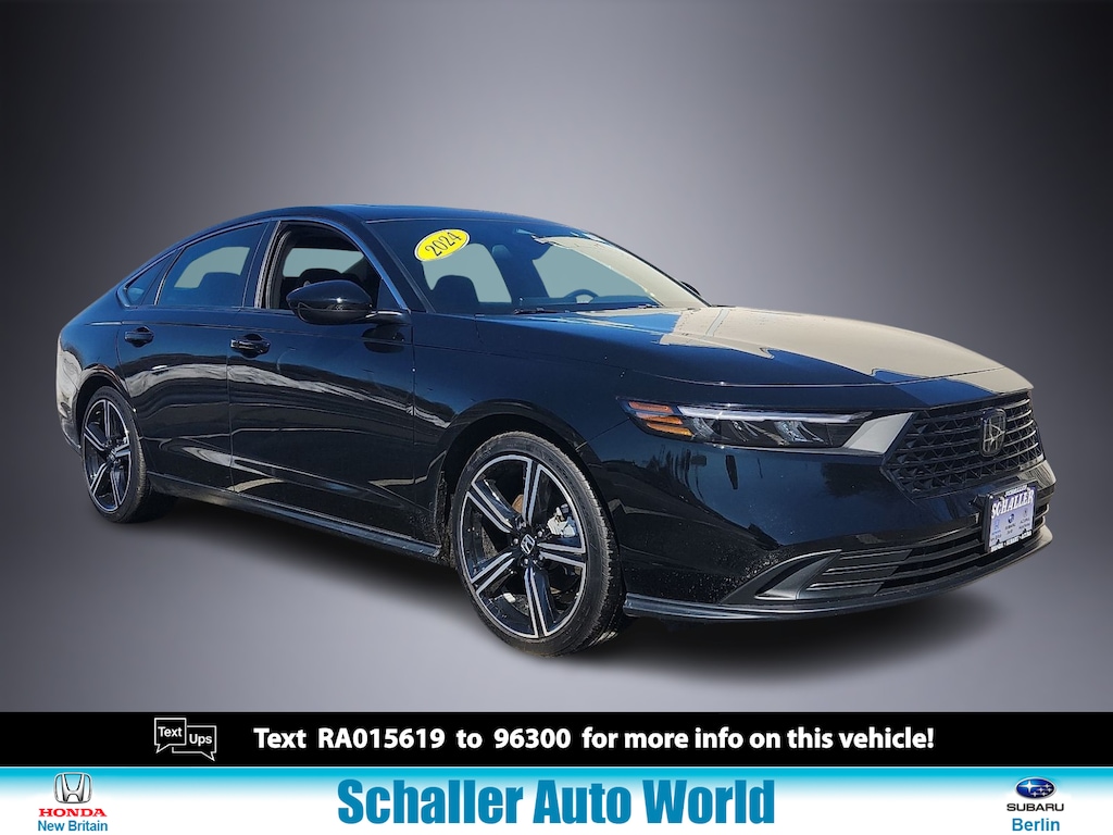 Black 2024 Honda Accord Hybrid Sport 2.0L 16V DOHC eCVT FWDPriced below KBB Fair Purchase Price! Odometer is 15304 miles below market average! 46/41 City/Highway MPGSchaller Auto Group has TWO Used Car Locations: Right off Route 9 in New Britain and Route 9 and the Berlin Turnpike in Berlin. Please call 860-826-2023 to confirm this Vehicle's Location. All of our Pre-Owned Vehicles go through our Comprehensive 125 Point Quality Inspection. Every Schaller pre-owned vehicle comes with warranty coverage! With all budgets in mind we now offer Schaller âValue Carsâ starting at $2995 and include a 30 day satisfaction guarantee and all come with a FREE Carfax Vehicle History Report. The Schaller Auto Group is Family Owned and Operated for Over 65 Years and is known for Selling Top Quality Used Vehicles and Standing behind them After the Sale!