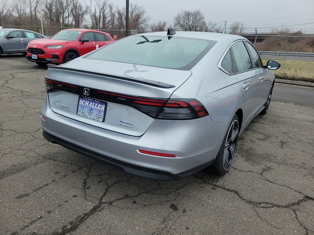"Schaller Auto World is pleased to offer this superb-looking 2025 Honda Accord Hybrid Sport in Solar Silver Metallic Beautifully equipped with 4-Wheel Disc Brakes 8 Speakers ABS brakes Adaptive Cruise Control: Adaptive Cruise Control (ACC) with Low-Speed Follow Air Conditioning Alloy wheels AM/FM radio Apple CarPlay/Android Auto Auto High-beam Headlights Automatic temperature control Blind Spot Information (BSI) System warning Brake assist Bumpers: body-color Compass Delay-off headlights Driver door bin Driver vanity mirror Dual front impact airbags Dual front side impact airbags Electronic Stability Control Emergency communication system: HondaLink Exterior Parking Camera Rear Fabric Seat Trim Four wheel independent suspension Front anti-roll bar Front Bucket Seats Front Center Armrest Front dual zone A/C Front reading lights Fully automatic headlights Heated Front Bucket Seats Heated front seats Illuminated entry Knee airbag Lane departure: Lane Keeping Assist System (LKAS) active Leather Shift Knob Leather steering wheel Low tire pressure warning Occupant sensing airbag Outside temperature display Overhead airbag Overhead console Panic alarm Passenger door bin Passenger vanity mirror Power door mirrors Power driver seat Power moonroof Power steering Power windows Radio data system Radio: 180-Watt Audio System Rear anti-roll bar Rear reading lights Rear seat center armrest Rear side impact airbag Rear window defroster Remote keyless entry Security system Speed control Speed-sensing steering Speed-Sensitive Wipers Split folding rear seat Spoiler Steering wheel mounted audio controls Telescoping steering wheel Tilt steering wheel Traction control Trip computer Variably intermittent wipers and Wheels: 19""x 8.5J Berlina Black!All new Schaller Cars Trucks and SUV's come with our EXCLUSIVE 10 year 150000 mile powertrain warranty! The Schaller Auto Group has been Serving the Communities around Hartford New Britain Berlin and Middletown since 1953. We have Hundreds of new and pre-owned vehicles in stock."