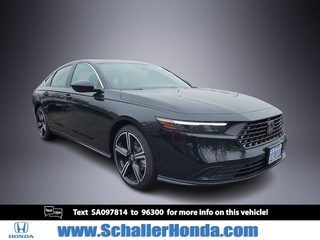 "Schaller Auto World is delighted to offer this superb 2025 Honda Accord Hybrid Sport in Crystal Black Pearl Beautifully equipped with 4-Wheel Disc Brakes 8 Speakers ABS brakes Adaptive Cruise Control: Adaptive Cruise Control (ACC) with Low-Speed Follow Air Conditioning Alloy wheels AM/FM radio Apple CarPlay/Android Auto Auto High-beam Headlights Automatic temperature control Blind Spot Information (BSI) System warning Brake assist Bumpers: body-color Compass Delay-off headlights Driver door bin Driver vanity mirror Dual front impact airbags Dual front side impact airbags Electronic Stability Control Emergency communication system: HondaLink Exterior Parking Camera Rear Fabric Seat Trim Four wheel independent suspension Front anti-roll bar Front Bucket Seats Front Center Armrest Front dual zone A/C Front reading lights Fully automatic headlights Heated Front Bucket Seats Heated front seats Illuminated entry Knee airbag Lane departure: Lane Keeping Assist System (LKAS) active Leather Shift Knob Leather steering wheel Low tire pressure warning Occupant sensing airbag Outside temperature display Overhead airbag Overhead console Panic alarm Passenger door bin Passenger vanity mirror Power door mirrors Power driver seat Power moonroof Power steering Power windows Radio data system Radio: 180-Watt Audio System Rear anti-roll bar Rear reading lights Rear seat center armrest Rear side impact airbag Rear window defroster Remote keyless entry Security system Speed control Speed-sensing steering Speed-Sensitive Wipers Split folding rear seat Spoiler Steering wheel mounted audio controls Telescoping steering wheel Tilt steering wheel Traction control Trip computer Variably intermittent wipers and Wheels: 19""x 8.5J Berlina Black!All new Schaller Cars Trucks and SUV's come with our EXCLUSIVE 10 year 150000 mile powertrain warranty! The Schaller Auto Group has been Serving the Communities around Hartford New Britain Berlin and Middletown since 1953. We have Hundreds of new and pre-owned vehicles in stock."