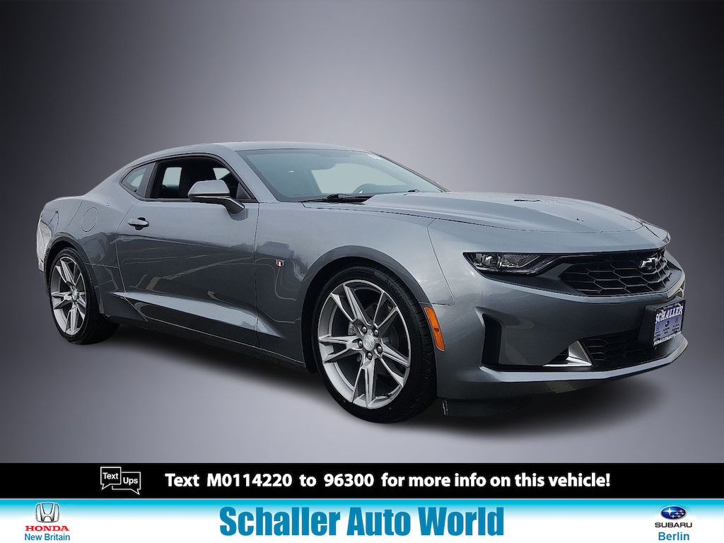 "Satin Steel Metallic 2021 Chevrolet Camaro 1LT 3.6L V6 DI 10-Speed Automatic RWD18""Silver-Painted Aluminum Wheels 2.77 Rear Axle Ratio 4-Wheel Disc Brakes 6 Speakers 6-Speaker Audio System Feature 6-Way Power Front Passenger Seat Adjuster 8-Way Power Driver Seat Adjuster ABS brakes Air Conditioning AM/FM radio: SiriusXM Apple CarPlay/Android Auto Automatic temperature control Bluetooth® For Phone Bose Premium 9-Speaker Audio System Feature Brake assist Bumpers: body-color Cloth Seat Trim Compass Dark Tint LED Tail Lamps Decklid-Mounted Lip Spoiler Delay-off headlights Driver door bin Driver vanity mirror Dual front impact airbags Dual front side impact airbags Electronic Stability Control Exterior Parking Camera Rear Four wheel independent suspension Front anti-roll bar Front Bucket Seats Front Center Armrest Front License Plate Bracket Front reading lights Front Sport Bucket Seats Fully automatic headlights Illuminated entry Knee airbag Leather Shift Knob Low tire pressure warning Occupant sensing airbag Overhead airbag Paddle-Shift Manual Controls Panic alarm Passenger door bin Passenger vanity mirror Power door mirrors Power driver seat Power passenger seat Power steering Power Sunroof Power windows Preferred Equipment Group 1LT Premium audio system: Chevrolet Infotainment System Radio data system Radio: Chevrolet Infotainment 3 Plus System Radio: Chevrolet Infotainment 3 System Rear anti-roll bar Rear window defroster Remote keyless entry Remote Vehicle Starter System RS Package Security system SiriusXM w/360L Speed control Speed-sensing steering Steering wheel mounted audio controls Tachometer Technology Package Telescoping steering wheel Tilt steering wheel Tire Inflation Kit Traction control Trip computer Variably intermittent wipers Voltmeter Wheels: 20""5-Split Spoke Machined-Face Aluminum. Odometer is 21107 miles below market average! 18/29 City/Highway MPGSchaller Auto Group has TWO Used Car Locations: Right off Route 9 in New Britain and Route 9 and the Berlin Turnpike in Berlin. Please call 860-826-2023 to confirm this Vehicle's Location. All of our Pre-Owned Vehicles go through our Comprehensive 125 Point Quality Inspection. Every Schaller pre-owned vehicle comes with warranty coverage! With all budgets in mind we now offer Schaller âValue Carsâ starting at $2995 and include a 30 day satisfaction guarantee and all come with a FREE Carfax Vehicle History Report. The Schaller Auto Group is Family Owned and Operated for Over 65 Years and is known for Selling Top Quality Used Vehicles and Standing behind them After the Sale!"