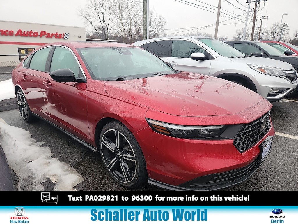 Red 2023 Honda Accord Hybrid Sport 2.0L 16V DOHC eCVT FWDPriced below KBB Fair Purchase Price! Odometer is 629 miles below market average! 46/41 City/Highway MPGSchaller Auto Group has TWO Used Car Locations: Right off Route 9 in New Britain and Route 9 and the Berlin Turnpike in Berlin. Please call 860-826-2023 to confirm this Vehicle's Location. All of our Pre-Owned Vehicles go through our Comprehensive 125 Point Quality Inspection. Every Schaller pre-owned vehicle comes with warranty coverage! With all budgets in mind we now offer Schaller âValue Carsâ starting at $2995 and include a 30 day satisfaction guarantee and all come with a FREE Carfax Vehicle History Report. The Schaller Auto Group is Family Owned and Operated for Over 65 Years and is known for Selling Top Quality Used Vehicles and Standing behind them After the Sale!