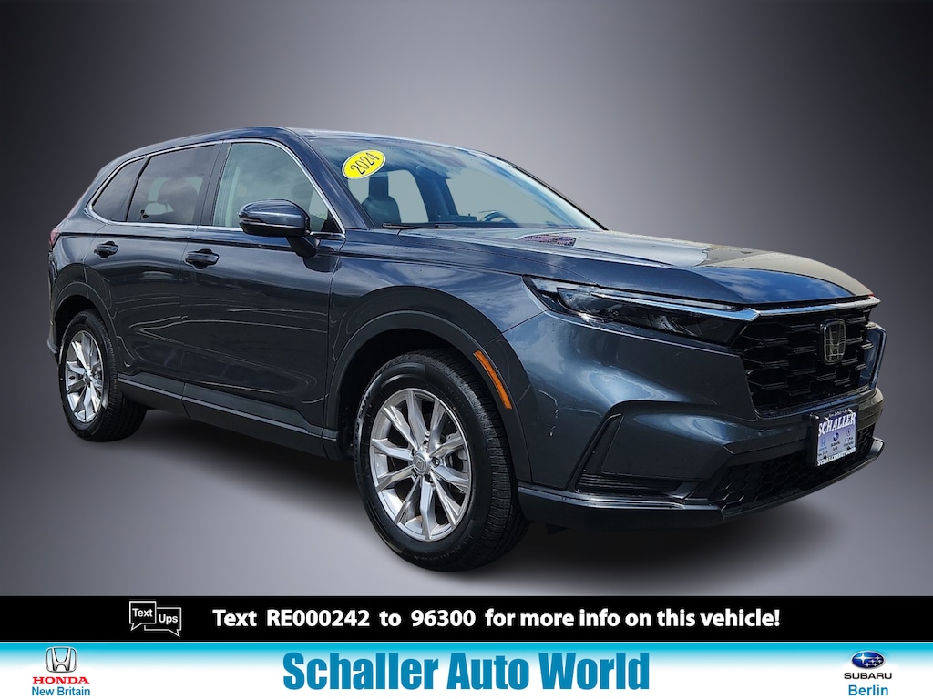"Meteorite Gray Metallic 2024 Honda CR-V EX 1.5L I4 DOHC 16V CVT AWD4-Wheel Disc Brakes 5.64 Axle Ratio 6 Speakers ABS brakes Adaptive Cruise Control: Adaptive Cruise Control (ACC) with Low-Speed Follow Air Conditioning Apple CarPlay/Android Auto Auto High-beam Headlights Automatic temperature control Blind Spot Information (BSI) System warning Brake assist Bumpers: body-color Cloth Seat Trim Compass Delay-off headlights Driver door bin Driver vanity mirror Dual front impact airbags Dual front side impact airbags Electronic Stability Control Exterior Parking Camera Rear Four wheel independent suspension Front anti-roll bar Front Bucket Seats Front Center Armrest Front dual zone A/C Front reading lights Fully automatic headlights Heated door mirrors Heated Front Bucket Seats Heated front seats Illuminated entry Knee airbag Low tire pressure warning Occupant sensing airbag Outside temperature display Overhead airbag Overhead console Panic alarm Passenger door bin Passenger vanity mirror Power door mirrors Power driver seat Power moonroof Power steering Power windows Radio data system Radio: 240-Watt AM/FM Audio System Rear anti-roll bar Rear reading lights Rear seat center armrest Rear side impact airbag Rear window defroster Rear window wiper Remote keyless entry Security system Speed control Speed-sensing steering Speed-Sensitive Wipers Split folding rear seat Spoiler Steering wheel mounted audio controls Tachometer Telescoping steering wheel Tilt steering wheel Traction control Trip computer Turn signal indicator mirrors Variably intermittent wipers Wheels: 18""Sparkle Silver Metallic. 27/32 City/Highway MPGSchaller Auto Group has TWO Used Car Locations: Right off Route 9 in New Britain and Route 9 and the Berlin Turnpike in Berlin. Please call 860-826-2023 to confirm this Vehicle's Location. All of our Pre-Owned Vehicles go through our Comprehensive 125 Point Quality Inspection. Every Schaller pre-owned vehicle comes with warranty coverage! With all budgets in mind we now offer Schaller “Value Cars” starting at $2995 and include a 30 day satisfaction guarantee and all come with a FREE Carfax Vehicle History Report. The Schaller Auto Group is Family Owned and Operated for Over 65 Years and is known for Selling Top Quality Used Vehicles and Standing behind them After the Sale!"