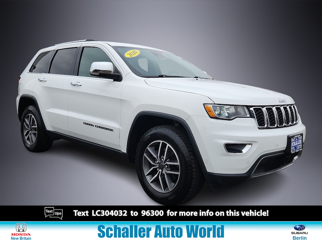Bright White Clearcoat 2020 Jeep Grand Cherokee Limited 3.6L V6 24V VVT 8-Speed Automatic 4WDOdometer is 13587 miles below market average!Schaller Auto Group has TWO Used Car Locations: Right off Route 9 in New Britain and Route 9 and the Berlin Turnpike in Berlin. Please call 860-826-2023 to confirm this Vehicle's Location. All of our Pre-Owned Vehicles go through our Comprehensive 125 Point Quality Inspection. Every Schaller pre-owned vehicle comes with warranty coverage! With all budgets in mind we now offer Schaller “Value Cars” starting at $2995 and include a 30 day satisfaction guarantee and all come with a FREE Carfax Vehicle History Report. The Schaller Auto Group is Family Owned and Operated for Over 65 Years and is known for Selling Top Quality Used Vehicles and Standing behind them After the Sale!
