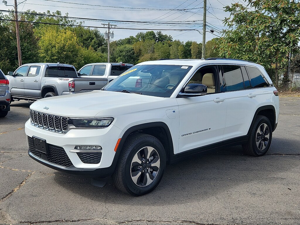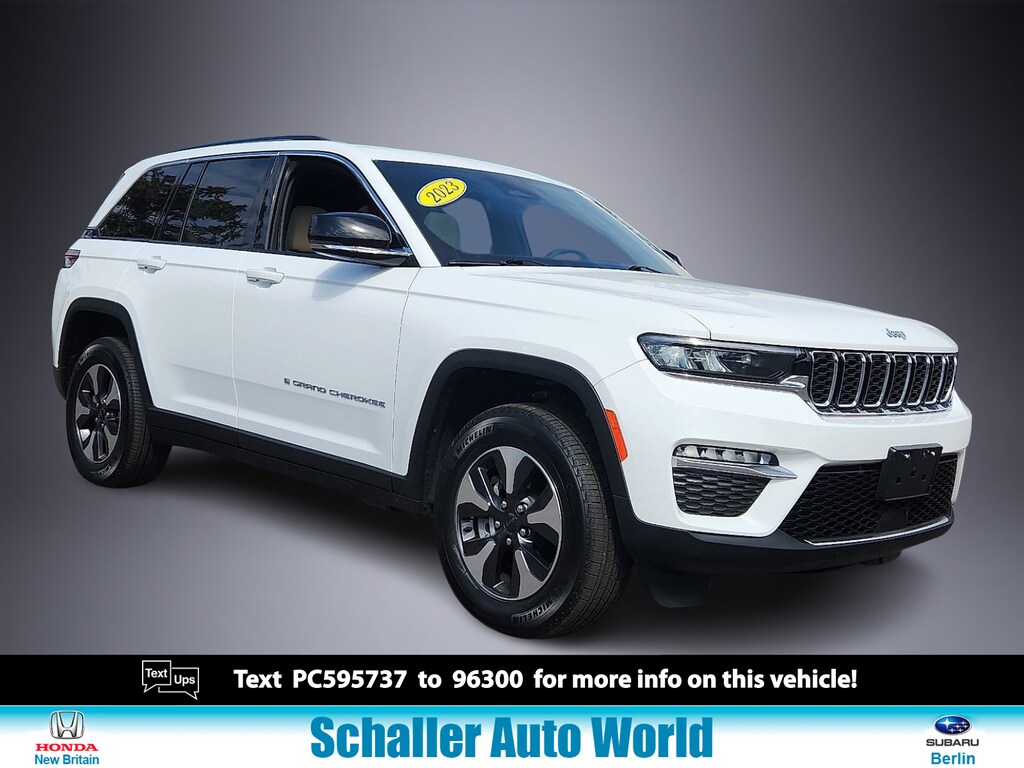 "Bright White Clearcoat 2023 Jeep Grand Cherokee 4xe 2.0L I4 DOHC 8-Speed Automatic 4WD10 Speakers 3.70 Rear Axle Ratio 4-Wheel Disc Brakes ABS brakes Air Conditioning AM/FM radio: SiriusXM with 360L Anti-whiplash front head restraints Audio memory Auto High-beam Headlights Automatic temperature control Brake assist Bumpers: body-color Capri Leatherette Seats Compass Delay-off headlights Driver door bin Driver vanity mirror Dual front impact airbags Dual front side impact airbags Electronic Stability Control Four wheel independent suspension Front anti-roll bar Front Bucket Seats Front Center Armrest w/Storage Front dual zone A/C Front fog lights Front License Plate Bracket Front reading lights Fully automatic headlights Garage door transmitter Heated door mirrors Heated front seats Heated rear seats Heated steering wheel Heavy Duty Suspension Illuminated entry Knee airbag Low tire pressure warning Memory seat Navigation System Occupant sensing airbag Outside temperature display Overhead airbag Overhead console Panic alarm ParkView Rear Back-Up Camera Passenger door bin Passenger vanity mirror Power door mirrors Power driver seat Power Liftgate Power moonroof Power passenger seat Power steering Power windows Quick Order Package 27F Radio data system Radio: Uconnect 5 Nav w/10.1""Display Rear anti-roll bar Rear reading lights Rear window defroster Rear window wiper Remote keyless entry Security system Speed control Speed-Sensitive Wipers Split folding rear seat Spoiler Steering wheel mounted audio controls Tachometer Telescoping steering wheel Tilt steering wheel Traction control Trip computer Turn signal indicator mirrors Variably intermittent wipers Voltmeter Wheels: 18""x 8""Fully Painted Aluminum. Priced below KBB Fair Purchase Price! Odometer is 3729 miles below market average!Schaller Auto Group has TWO Used Car Locations: Right off Route 9 in New Britain and Route 9 and the Berlin Turnpike in Berlin. Please call 860-826-2023 to confirm this Vehicle's Location. All of our Pre-Owned Vehicles go through our Comprehensive 125 Point Quality Inspection. Every Schaller pre-owned vehicle comes with warranty coverage! With all budgets in mind we now offer Schaller âValue Carsâ starting at $2995 and include a 30 day satisfaction guarantee and all come with a FREE Carfax Vehicle History Report. The Schaller Auto Group is Family Owned and Operated for Over 65 Years and is known for Selling Top Quality Used Vehicles and Standing behind them After the Sale!"