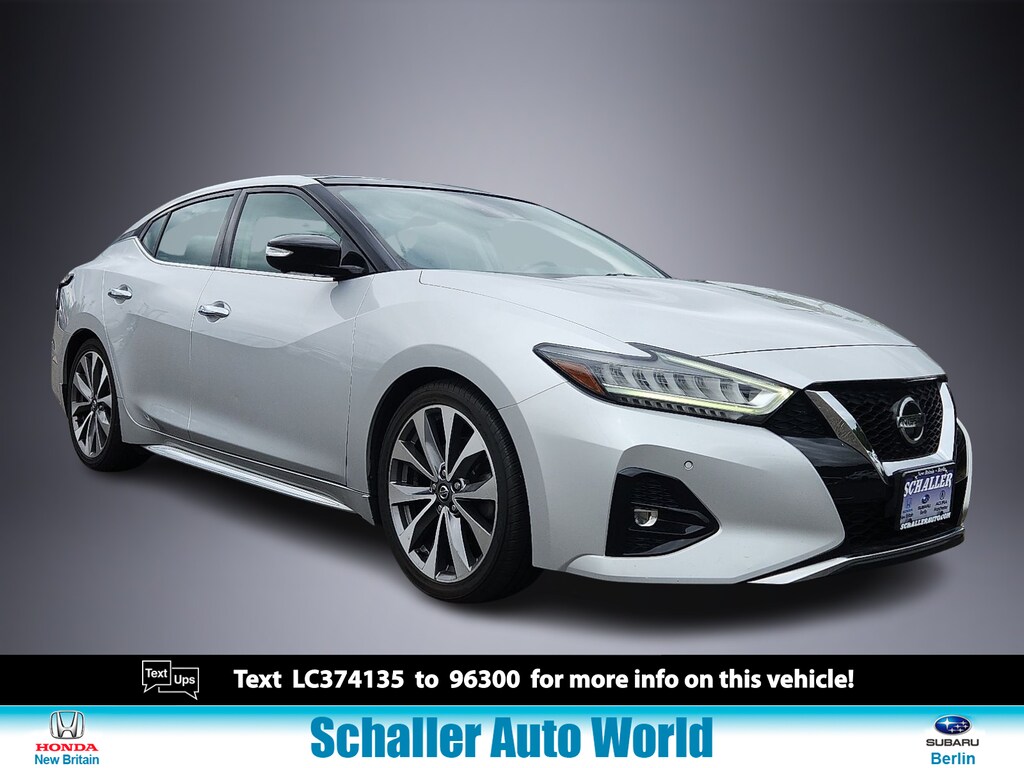 "Brilliant Silver Metallic 2020 Nissan Maxima Platinum 3.5L V6 DOHC 24V CVT with Xtronic FWD11 Speakers 4-Wheel Disc Brakes ABS brakes Air Conditioning Alloy wheels AM/FM radio: SiriusXM Auto High-beam Headlights Auto tilt-away steering wheel Auto-dimming door mirrors Auto-dimming Rear-View mirror Automatic temperature control Blind Spot Warning Body Color Rocker Panel Moldings Body-Colored Splash Guards Brake assist Bumpers: body-color CD player Compass Delay-off headlights Driver door bin Driver vanity mirror Dual front impact airbags Dual front side impact airbags Electronic Stability Control Emergency communication system: NissanConnect Services Exterior Parking Camera Rear First Aid Kit Four wheel independent suspension Front anti-roll bar Front Bucket Seats Front Center Armrest Front dual zone A/C Front fog lights Front reading lights Front Zero Gravity Climate-Controlled Seats Fully automatic headlights Garage door transmitter: HomeLink Heated door mirrors Heated front seats Heated steering wheel Illuminated entry Knee airbag Low tire pressure warning Memory seat Navigation System NissanConnect featuring Apple CarPlay and Android Auto Occupant sensing airbag Outside temperature display Overhead airbag Overhead console Panic alarm Passenger door bin Passenger vanity mirror Power door mirrors Power driver seat Power moonroof Power passenger seat Power steering Power windows Premium Ascot Leather-Appointed Seat Trim Radio data system Radio: AM/FM/CD Audio System w/Navigation Rain sensing wipers Rear anti-roll bar Rear Diffuser Rear reading lights Rear seat center armrest Rear side impact airbag Rear Window Blind Rear window defroster Remote keyless entry Security system Shopping Bag Hooks Speed control Speed-sensing steering Speed-Sensitive Wipers Split folding rear seat Spoiler Sport Carpeted Floor Mats Sport steering wheel Steering wheel memory Steering wheel mounted audio controls Tachometer Telescoping steering wheel Tilt steering wheel Traction control Trip computer Trunk Area Protector Trunk Net Turn signal indicator mirrors Variably intermittent wipers Ventilated front seats Wheels: 19""Machined Alloy. Priced below KBB Fair Purchase Price! Odometer is 4520 miles below market average! 20/30 City/Highway MPGAwards: * JD Power Automotive Performance Execution and Layout (APEAL) Study Initial Quality Study (IQS)Schaller Auto Group has TWO Used Car Locations: Right off Route 9 in New Britain and Route 9 and the Berlin Turnpike in Berlin. Please call 860-826-2023 to confirm this Vehicle's Location. All of our Pre-Owned Vehicles go through our Comprehensive 125 Point Quality Inspection. Every Schaller pre-owned vehicle comes with warranty coverage! With all budgets in mind we now offer Schaller âValue Carsâ starting at $2995 and include a 30 day satisfaction guarantee and all come with a FREE Carfax Vehicle History Report. The Schaller Auto Group is Family Owned and Operated for Over 65 Years and is known for Selling Top Quality Used Vehicles and Standing behind them After the Sale!"