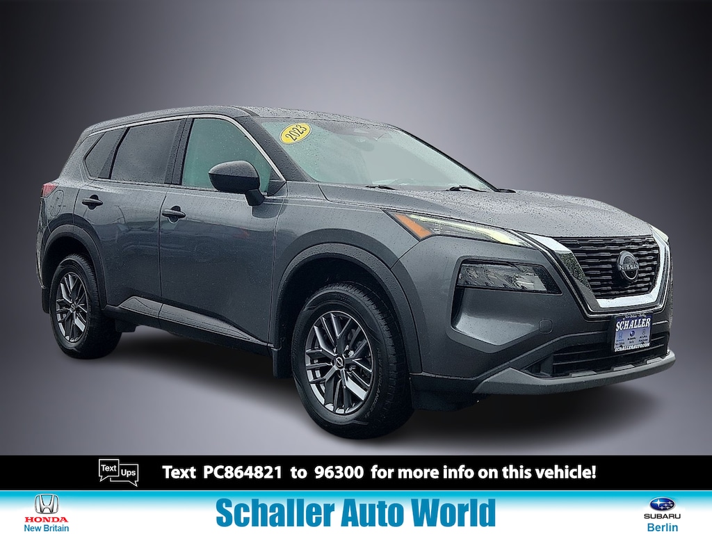 "Gun Metallic 2023 Nissan Rogue S 1.5L I3 Turbocharged DOHC 12V LEV3-ULEV50 201hp CVT with Xtronic AWD17""Aluminum Alloy Wheels 4 Speakers 4-Wheel Disc Brakes 5.604 Axle Ratio ABS brakes Air Conditioning Alloy wheels AM/FM Radio AM/FM radio: SiriusXM Auto High-beam Headlights Black Splash Guards (Set of 4) Blind Spot Warning Brake assist Bumpers: body-color Chrome Rear Bumper Protector Cloth Seat Trim Delay-off headlights Driver door bin Driver vanity mirror Dual front impact airbags Dual front side impact airbags Electronic Stability Control First Aid Kit Floor Mats w/1-Piece Cargo Area Protector Four wheel independent suspension Front anti-roll bar Front Bucket Seats Front Center Armrest Front reading lights Fully automatic headlights Illuminated entry Knee airbag Low tire pressure warning NissanConnect featuring Apple CarPlay and Android Auto Occupant sensing airbag Outside temperature display Overhead airbag Overhead console Panic alarm Passenger door bin Passenger vanity mirror Power door mirrors Power steering Power windows Radio data system Rear anti-roll bar Rear Parking Sensors Rear seat center armrest Rear side impact airbag Rear window defroster Rear window wiper Remote keyless entry Speed control Speed-Sensitive Wipers Split folding rear seat Spoiler Steering wheel mounted audio controls Tachometer Telescoping steering wheel Tilt steering wheel Traction control Trip computer Variably intermittent wipers. Priced below KBB Fair Purchase Price! 28/35 City/Highway MPGSchaller Auto Group has TWO Used Car Locations: Right off Route 9 in New Britain and Route 9 and the Berlin Turnpike in Berlin. Please call 860-826-2023 to confirm this Vehicle's Location. All of our Pre-Owned Vehicles go through our Comprehensive 125 Point Quality Inspection. Every Schaller pre-owned vehicle comes with warranty coverage! With all budgets in mind we now offer Schaller âValue Carsâ starting at $2995 and include a 30 day satisfaction guarantee and all come with a FREE Carfax Vehicle History Report. The Schaller Auto Group is Family Owned and Operated for Over 65 Years and is known for Selling Top Quality Used Vehicles and Standing behind them After the Sale!"