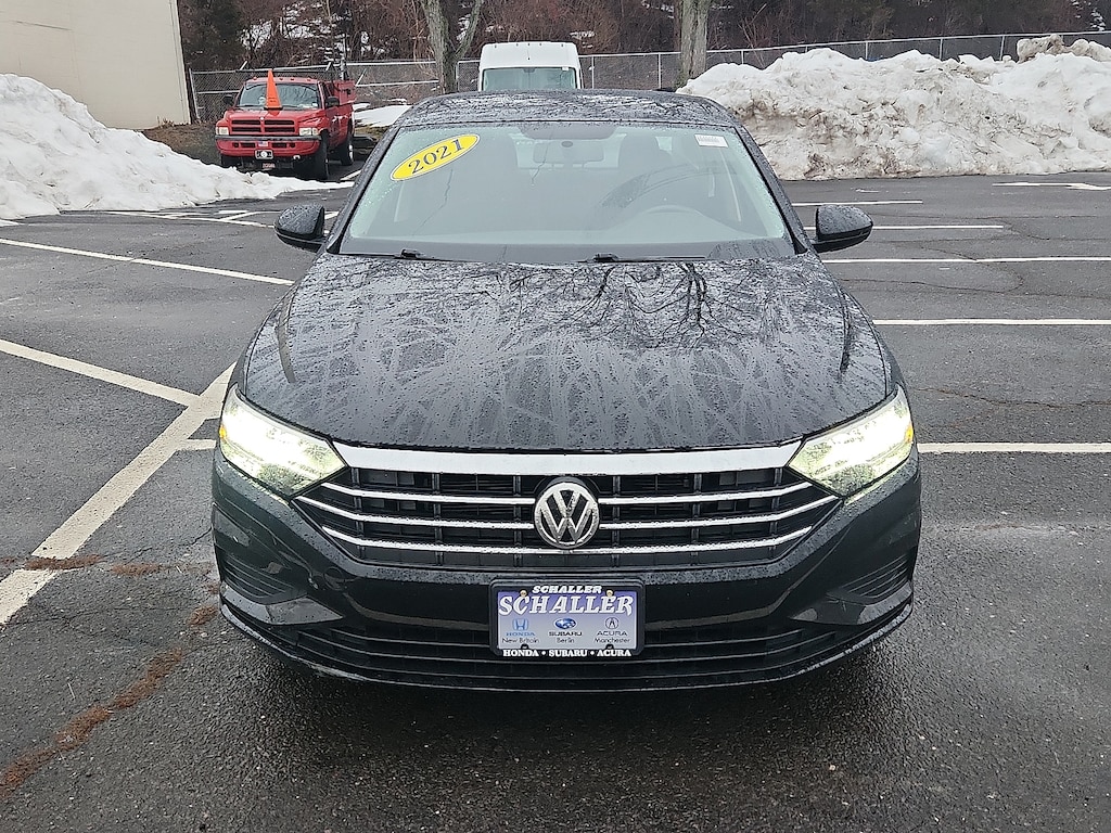 "Black Uni 2021 Volkswagen Jetta 1.4T S 1.4L TSI 8-Speed Automatic FWD4 Speakers 4-Wheel Disc Brakes ABS brakes Air Conditioning AM/FM radio Blind Spot Monitor Brake assist Bumpers: body-color Cloth Seat Trim Delay-off headlights Driver Assistance Package Driver door bin Driver vanity mirror Dual front impact airbags Dual front side impact airbags Electronic Stability Control Emergency communication system: VW Car-Net services (capabilities require enrollment or subscription) Exterior Parking Camera Rear First Aid Kit Front anti-roll bar Front Assist w/Autonomous Emergency Braking Front Bucket Seats Front Center Armrest Front Comfort Seats Front wheel independent suspension Fully automatic headlights Heated Side Mirrors Heavy Duty Trunk Liner w/VW CarGo Blocks Illuminated entry Low tire pressure warning Monster Mats w/Logo Rubber Mats Kit (Set of 4) Occupant sensing airbag Outside temperature display Overhead airbag Overhead console Panic alarm Passenger door bin Passenger vanity mirror Power door mirrors Power steering Power windows Radio data system Radio: Composition Color w/6.5""Touchscreen Rear anti-roll bar Rear reading lights Rear Traffic Alert Rear window defroster Remote keyless entry Roadside Assistance Kit Speed control Speed-sensing steering Split folding rear seat Steering wheel mounted audio controls Tachometer Telescoping steering wheel Tilt steering wheel Traction control Trip computer Variably intermittent wipers Wheels: 16""2-Tone Machined Alloy. Priced below KBB Fair Purchase Price! Odometer is 26779 miles below market average! 29/39 City/Highway MPGSchaller Auto Group has TWO Used Car Locations: Right off Route 9 in New Britain and Route 9 and the Berlin Turnpike in Berlin. Please call 860-826-2023 to confirm this Vehicle's Location. All of our Pre-Owned Vehicles go through our Comprehensive 125 Point Quality Inspection. Every Schaller pre-owned vehicle comes with warranty coverage! With all budgets in mind we now offer Schaller âValue Carsâ starting at $2995 and include a 30 day satisfaction guarantee and all come with a FREE Carfax Vehicle History Report. The Schaller Auto Group is Family Owned and Operated for Over 65 Years and is known for Selling Top Quality Used Vehicles and Standing behind them After the Sale!"